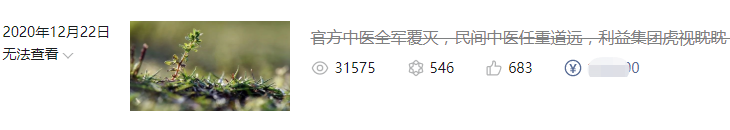 原创帖被删后,先后至少有26个公众号全文转发了这篇文章。文章的核心观点就是:官方中医全军覆灭。(有兴趣的朋友请关注公众号,回复“全军覆灭”查看全文)